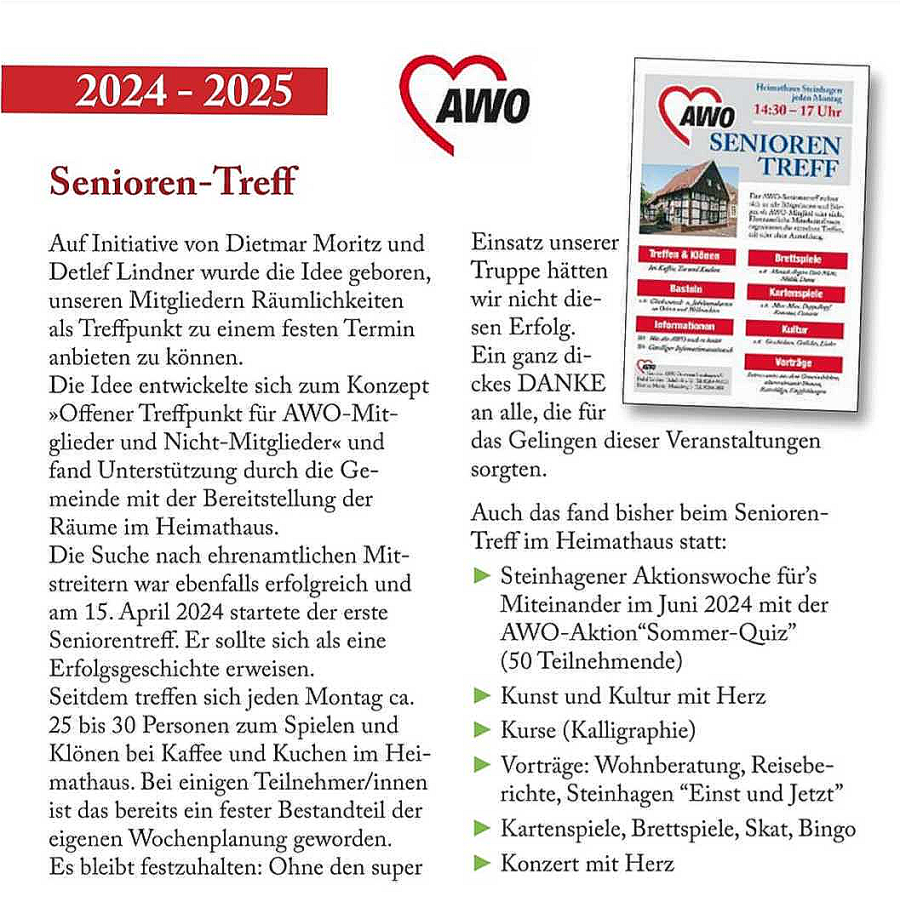 Karten im Vorverkauf (Montags im Seniorentreff) oder Telefonisch bei D. Moritz unter 05204 3850